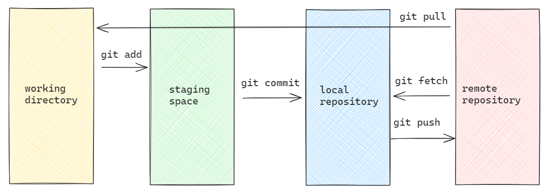 Code goes through various flows to finally be stored in a specific repository. Let's take a look at this image: